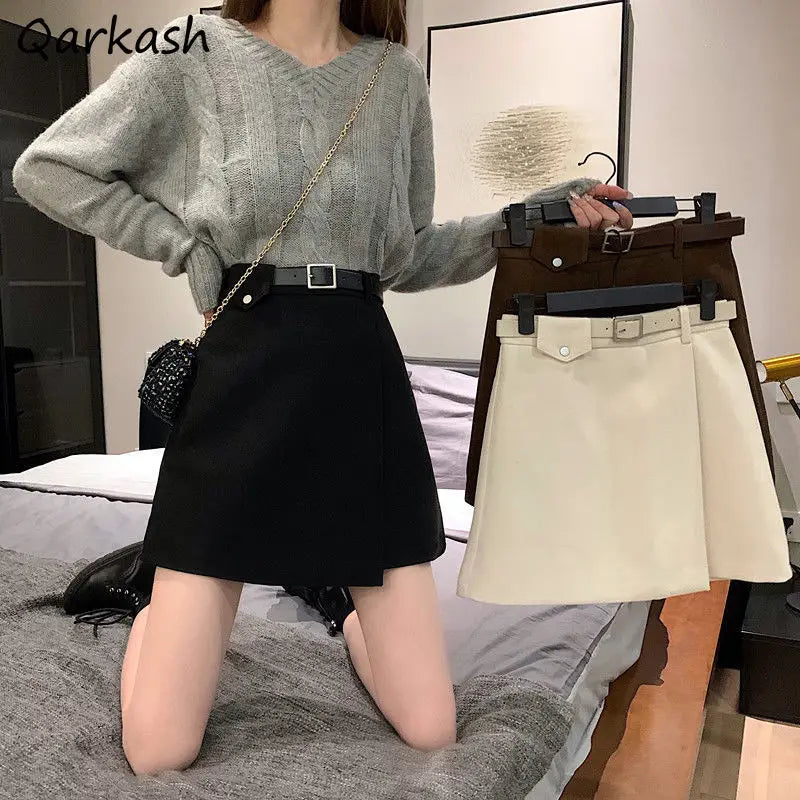 Mini Skirts Women Simple Fashion Solid All-match Temperament Feminine Spring Elegant Daily Ins Retro Casual Basic Bottom Empire